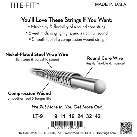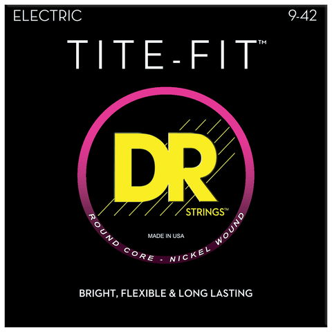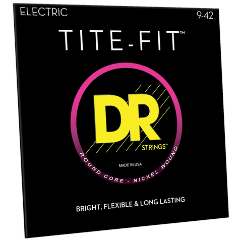 Tite-Fit round-wound nickel-plated electric guitar strings are designed to be a great all-around string. Based upon a round core, the construction techniques for the Tite-Fit electrics are very old. However, the core wire and wrap wire in DRs are the latest, most advanced and expensive metals available.