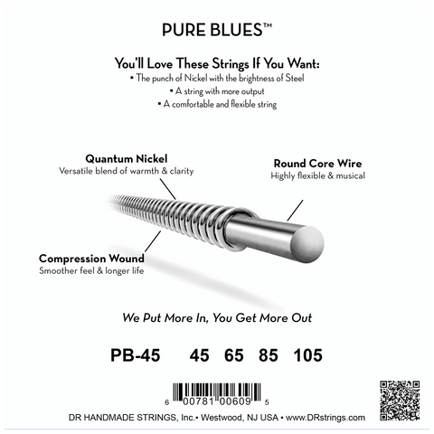 DR Strings PB-45 PURE BLUES™ Quantum Nickel™ Bass Medium 45-105