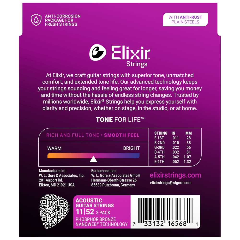 PHOSPHOR BRONZE STRINGS WITH ELIXIR® TECHNOLOGY FOR LONGEST-LASTING TONE