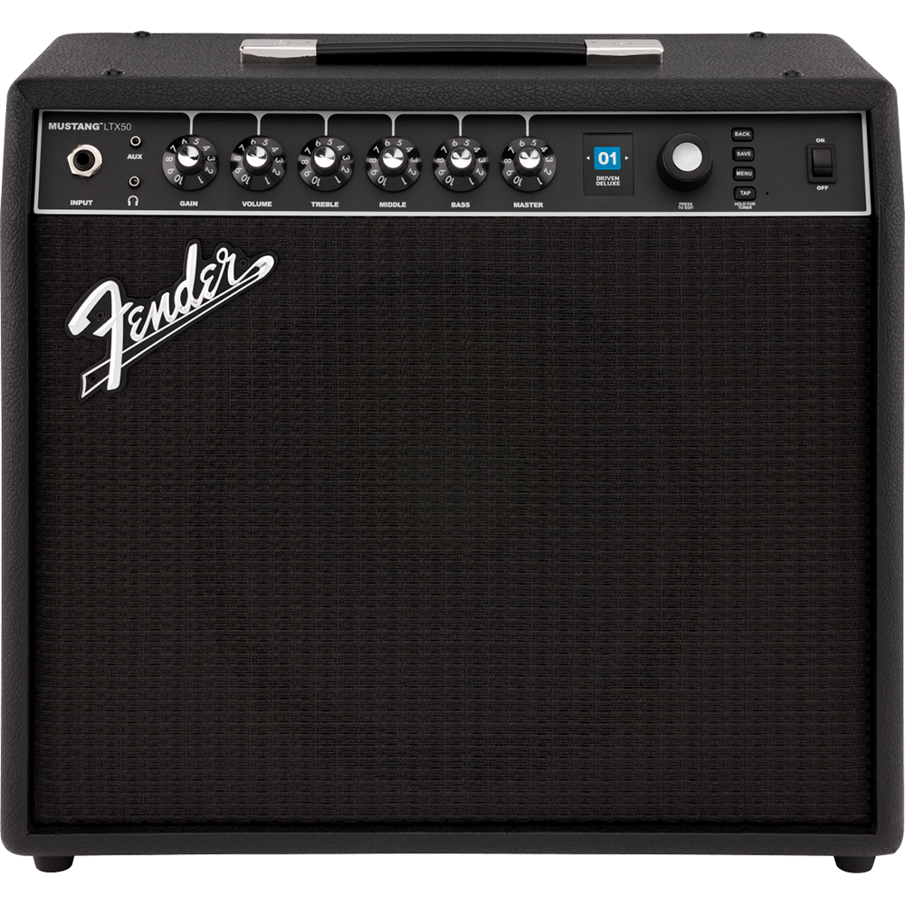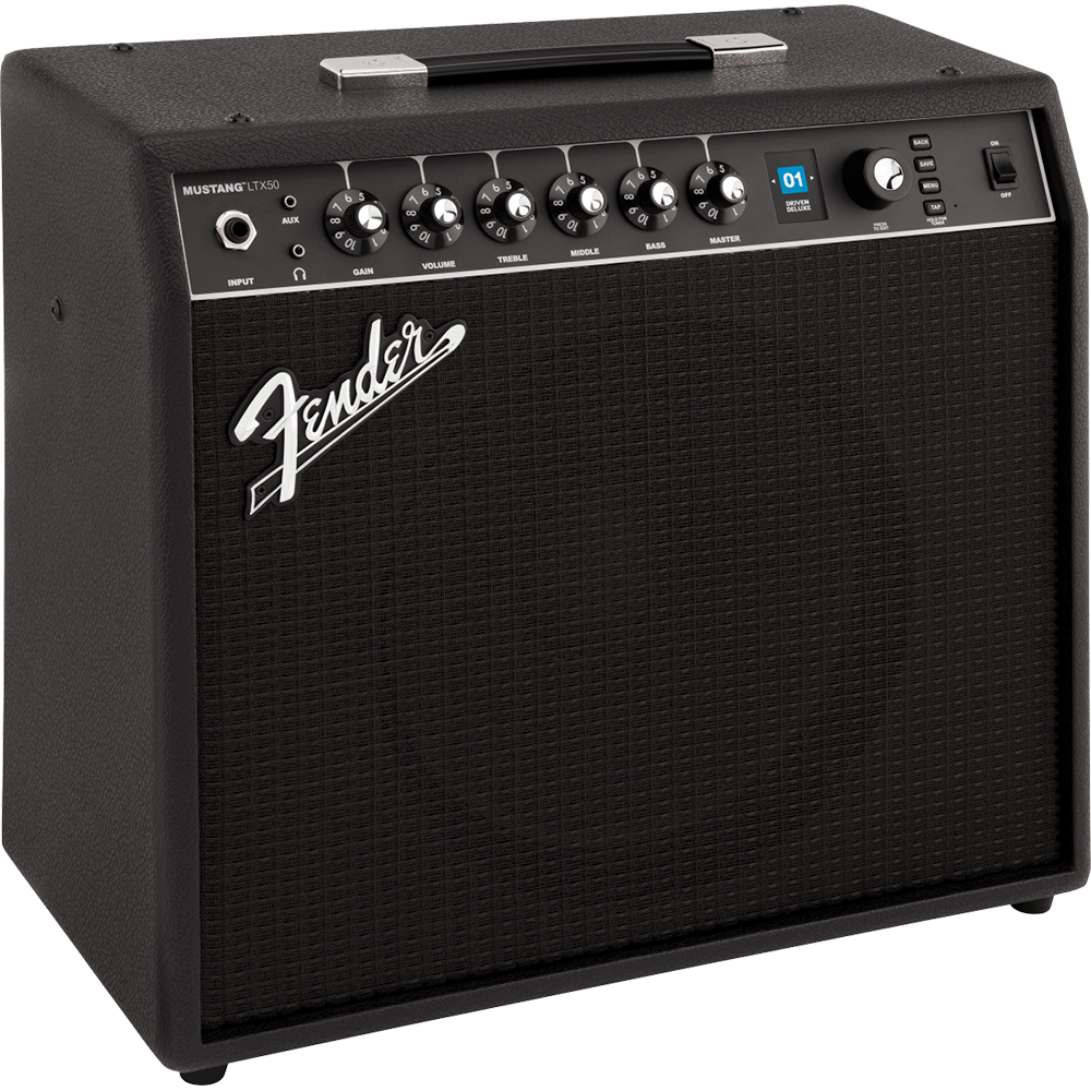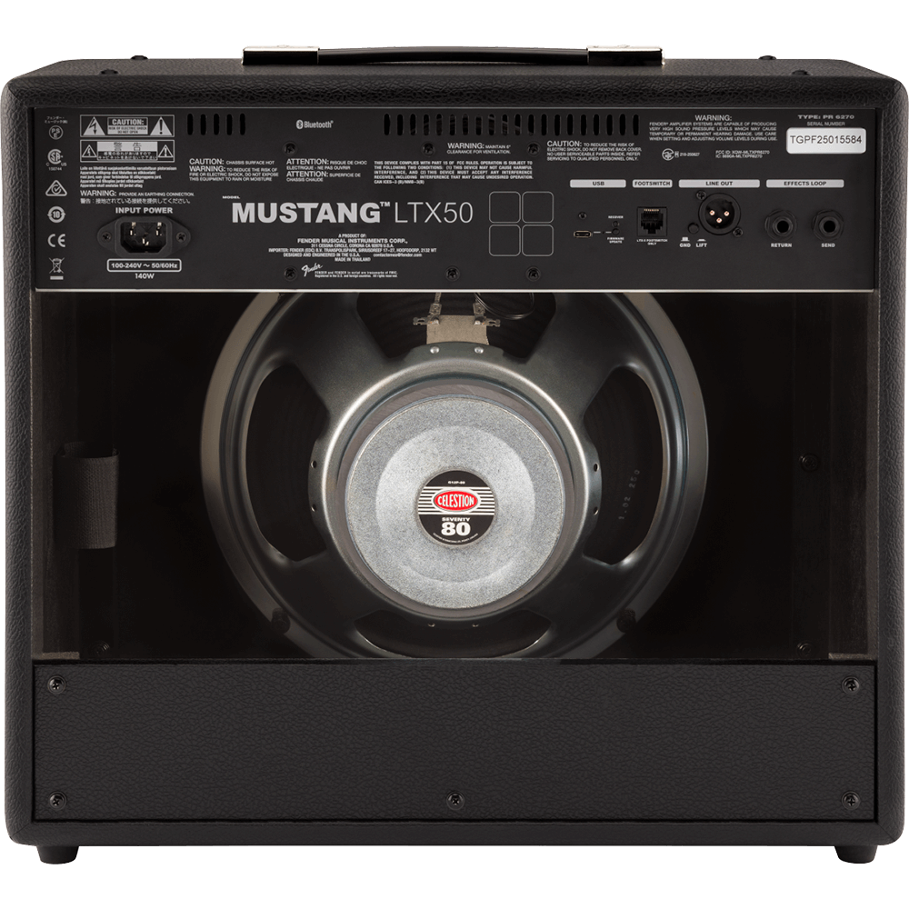 Mustang® LTX 50 is ideal for practice or performance with a 12" Celestion® G12P-80 speaker and an optional gig-ready 5-button footswitch. Onboard Bluetooth® allows you to jam along with your favorite songs as well as create, edit, download and share presets using the Fender TONE® app.