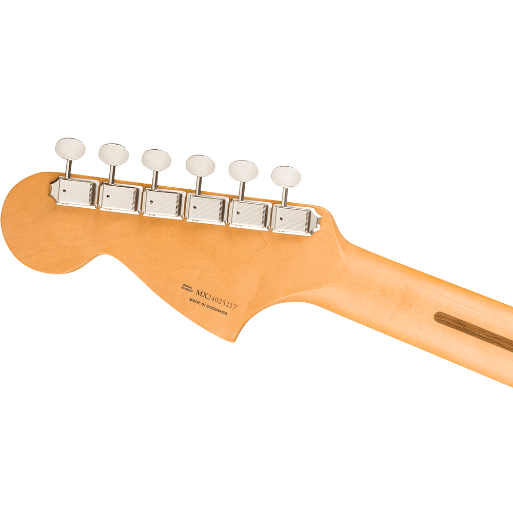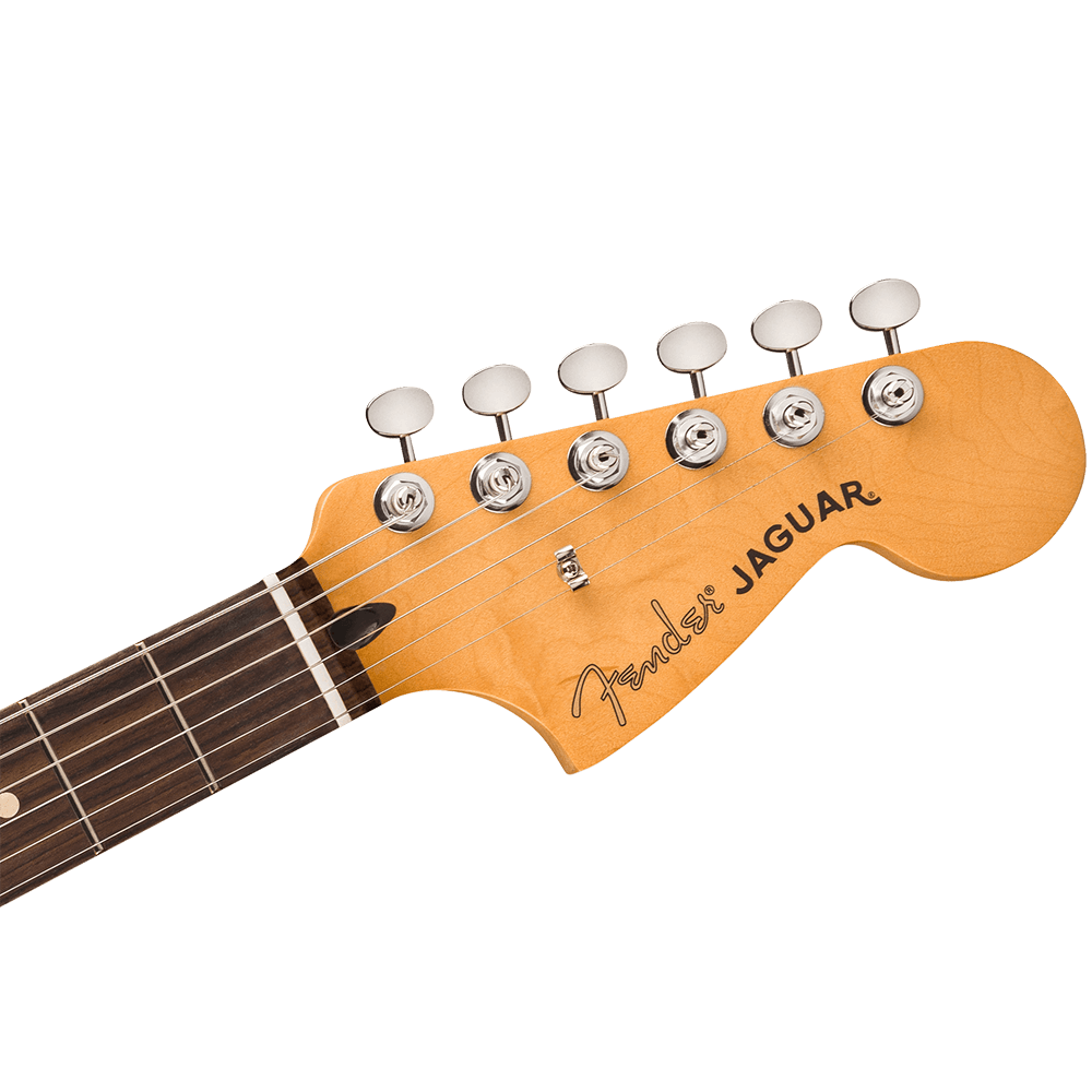 The Player II Jaguar radiates timeless Fender charm, but under the hood, it's primed for today's players. Everything about the neck is designed for fast and fluid playability, from the Modern “C”-profile with silky satin urethane finish on the back to the comfy 9.5”-radius slab rosewood with smooth rolled edges and 22 medium jumbo frets. A classic alder body is available in both timeless Fender finishes and never-before-seen colors unearthed from the archives. Player Series Alnico V (Bridge) and Alnico II (Neck) Single-Coil Jaguar pickups offer crystalline highs, musical mids and tight lows that elevate any genre. The 3-way blade switch lets you easily dial in everything from glassy neck pickup chime to cutting bridge pickup bite and all points in between, while a 6-saddle Jaguar bridge with Floating Tremolo, upgraded Mustang® saddles and ClassicGear™ tuners ensure precise tuning stability for the flexibility to explore endless sonic possibilities.