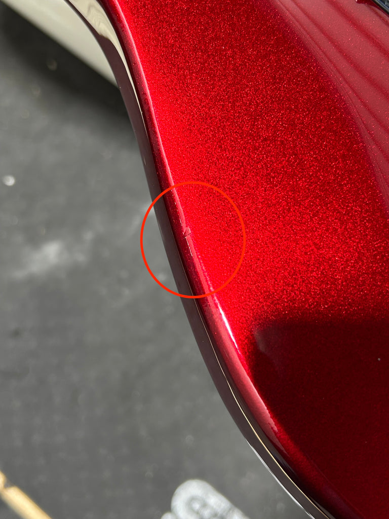 New, B-stock bass. B-stock means that it has a finish flaw but does not affect playability. This bass has minor damage at belly contour top edge of the bass. See last photo.