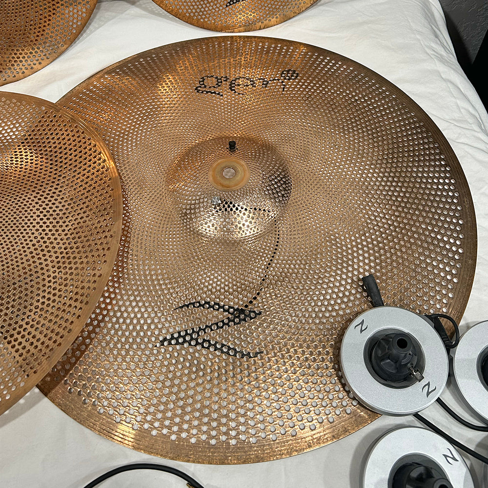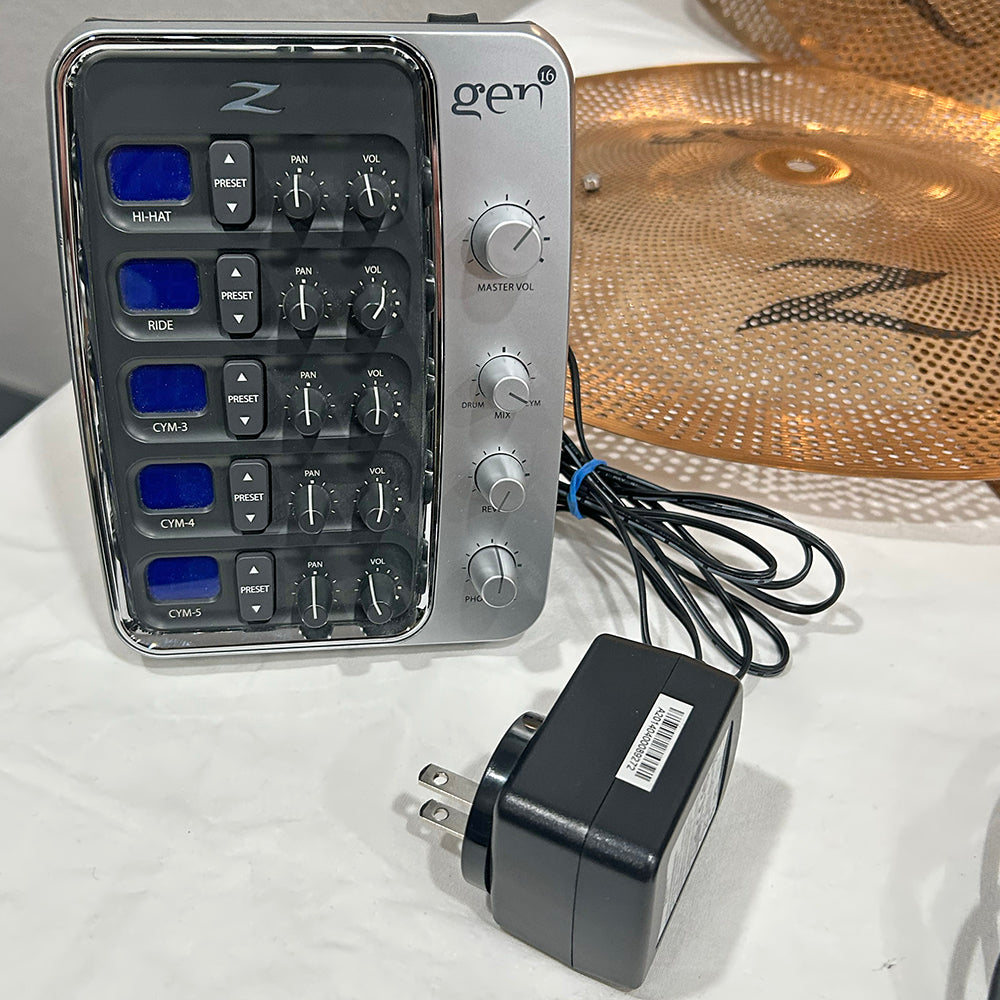 The Zildjian Gen16 Acoustic-Electric Cymbal System represents a paradigm shift in cymbal design from Zildjian. Utilizing patented reduced volume acoustic cymbals, patented cymbal pickup and Digital Cymbal Processor "DCP" to tone shape the sound of each cymbal the user can apply an array of tone shapes to each real Zildjian Gen16 cymbal. Unlike cymbal triggers, Gen16 cymbals may be played with sticks, rods or mallets. They can be brushed and choked like traditional cymbals because they are real cymbals.
